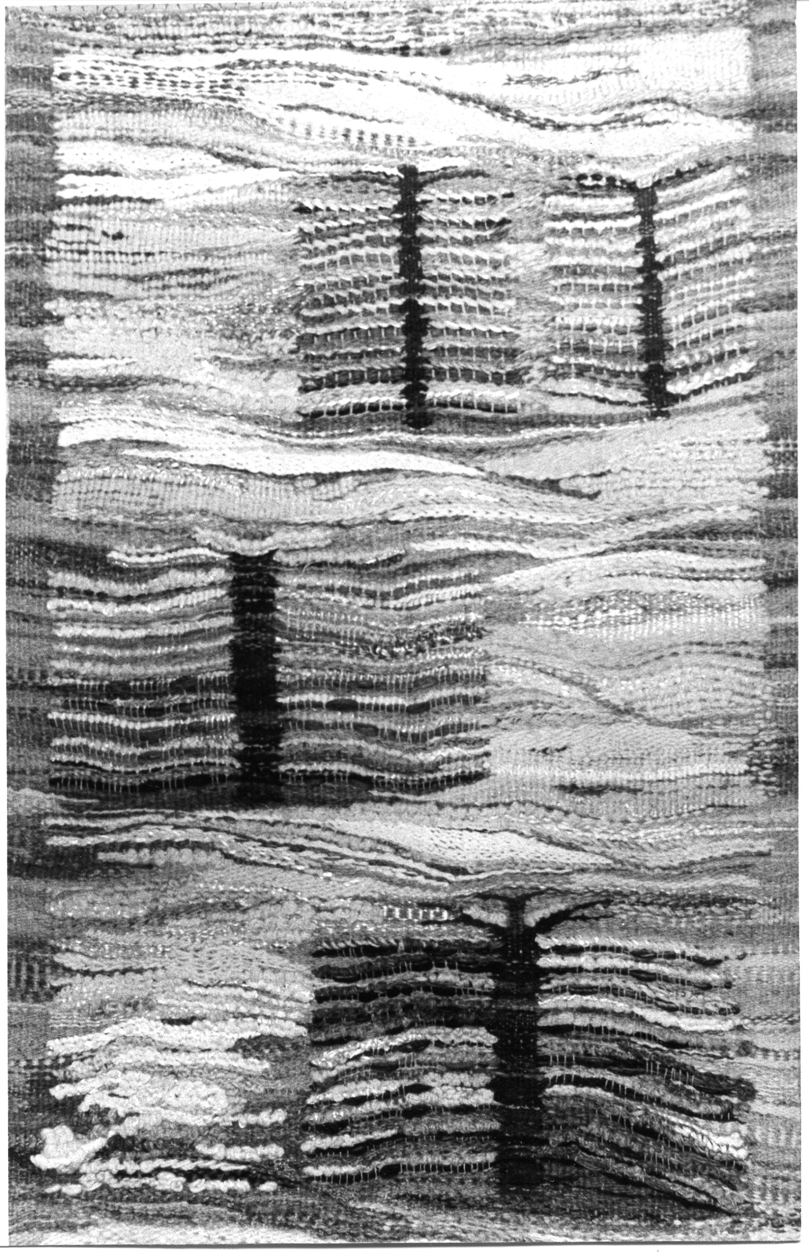 Tkaniny Jelonki - 1952Gobelin tkanina podwójna; Technika - klasyczna; Materiał - wełna, kolory - fiolety i złoty; Własność Ministerstwa Kultury i Sztuki;Tkanina publikowana w "Tkanina Polska" red. Ksawery Piwocki - Arkady Warszawa 1959, str. 198 Drzewka - 1953Tkanina podwójna - 135 x 75; Materiał - wełna Jesień - 1972Gobelin 250 x 85; Technika - mieszana; Materiał - sizal, wełna; Sprzedana na II Międzynarodowych Targach Tkaniny w Łodzi 1974 NasionaGobelin - 90 x 60; Technika - splot przestrzenny; Materiał wełna; Sprzedana na Międzynarodowych Targach Tkaniny w Łodzi 1974 W parkuGobelin 200 x 120 - Tkanina strukturalna; Technika własna - splot mieszany; Materiał - wełna, len Fragment Znak - 1975Gobelin 200 x 90; Technika - splot własny; Materiał - wełna Fragment Dal - 1974Temat marynistyczny 200 x 90; Technika - własna; Materiał - wełna; Sprzedana na II Targach Międzynarodowych Tkaniny w Łodzi 1974 Kompozycja z ażuremTkanina - 200 x 70; Technika - mieszana; Materiał - wełna OwocTkanina - 200 x 90; Technika - własna; Materiał - sizal, wełna Fragment Ogień ITkanina - 100 x 180 ; Technika - własna; Materiał - wełna Fragment Ogień IITkanina - 100 x 180 ; Technika - własna; Materiał - wełna Fragment Fragment WisłaGobelin 200 x 118; Technika - własna; Materiał - wełna Jezioro Genezaret 1977Gobelin 200 x 120; Technika - własna; Materiał - wełna, sizal Jesień w ŁazienkachGobelin 200 x 90; Technika - własna; Materiał - wełna SzronGobelin 200 x 100; Technika - własna; Materiał - wełna , sznurek biały opalizujący OgródGobelin 200 x 135;Technika - splot własny; Materiał - sizal; Prezentowana na Wystawie Tkaniny Polskiej w Sofii 1974 OdblaskGobelin 190 x 90 tkanina warsztatowa; Technika - splot własny; Materiał - sizal RoślinnośćGobelin 80 x 200; Technika - własna; Materiał - wełna Chrystus wśród zbóż 1985Gobelin 110 x 140; Technika - mieszana z ażurem; Materiał - sizal PestkowiecGobelin 200 x 80; Technika - własna ażur; Materiał - wełna Fragment górny Fragment dolny Pokosy 1974Gobelin 300 x 200; Technika - splot ażur; Materiał sizal; zakupiona przez Ministerstwo Rolnictwa Fragment Fragment Blask 1974Gobelin 170 x 82; Technika - własna; Materiał - wełna, sznurek biały opalizujący; Wystawa Tkaniny Polskiej w Sofii Krzew - 1979Gobelin 120 x 160; Technika klasyczna; Materiał - wełna; Muzeum Historii Tkaniny w Łodzi ZwierzyniecGobelin 190 x 90; Technika - własna; Materiał - wełna; Wystawiana: Sofia 1974; Piaseczno 1975; Góra Kalwaria 1975 Szum potokuGobelin 200 x 140; Technika - własna; Materiał - wełna, sizal , jedwab GąszczGobelin 100 x 150; Technika - splot własny; Materiał wełna Fragment PastwiskoGobelin 90 x 120; Technika - własna; Materiał - wełna Fragment PastwiskoTkanina miniaturowa 20 x 20; Technika - klasyczna; Materiał wełna PejzażTkanina miniaturowa 20 x 20; Technika - klasyczna; Materiał - wełna Strumień wiosnąTkanina miniaturowa 20 x 20; Technika - klasyczna; Materiał - wełna StrumieńTkanina miniaturowa 20 x 20; Technika - klasyczna; Materiał - wełna